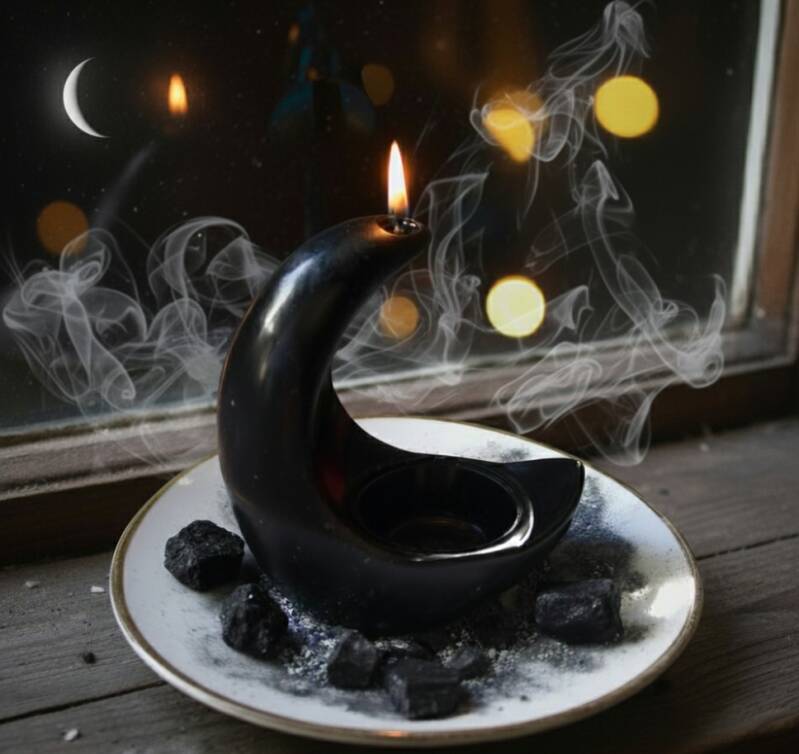This ritual is designed to be performed during the waning crescent moon, a powerful time for release and shedding what no longer serves you. The black crescent moon candle, with its protective and absorptive properties, is a potent tool for this working.